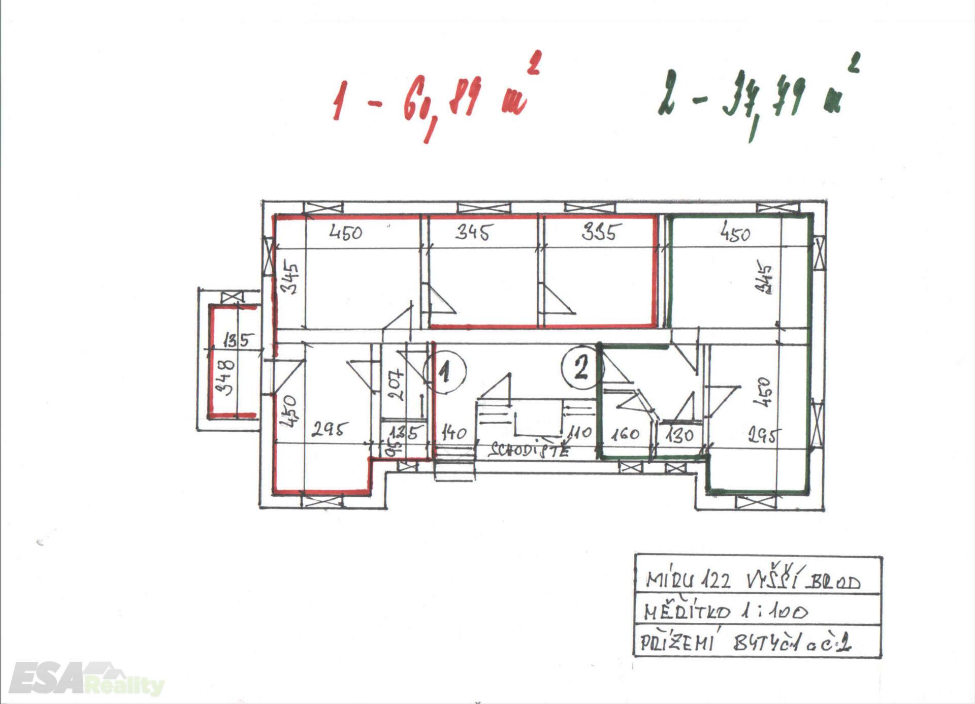 • 4 bytové jednotky: 1+1 o výměře 36,6 m², 2× 2+1 o výměře 49 m², 3+1 o výměře 60 m²